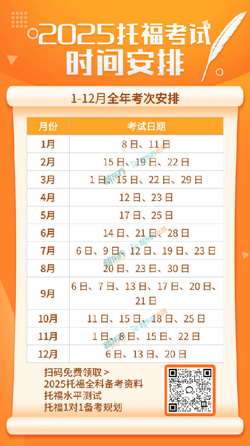 一、引言在广大考生的翘首以盼中,2025 年托福考试时间表终于重磅出炉!这是每一位托福考生都密切关注的重要信息,关乎着大家的备考计划与留学梦想的实现。接下来,就为大家...